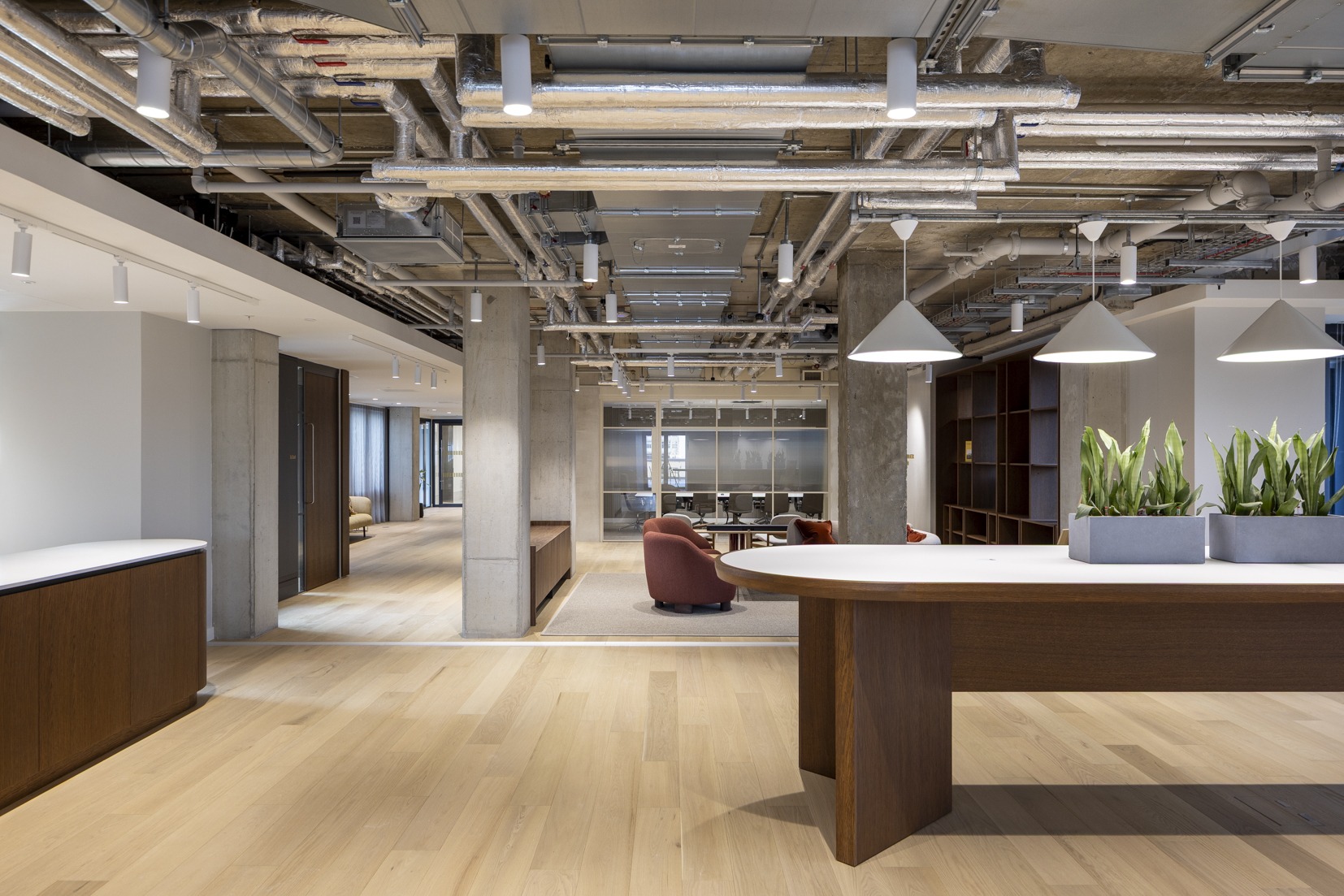 The brief was to create a statement floor that celebrates the building’s rich history and exposed reinforced concrete structure, while offering flexibility for shared use of the executive areas by other building occupants.