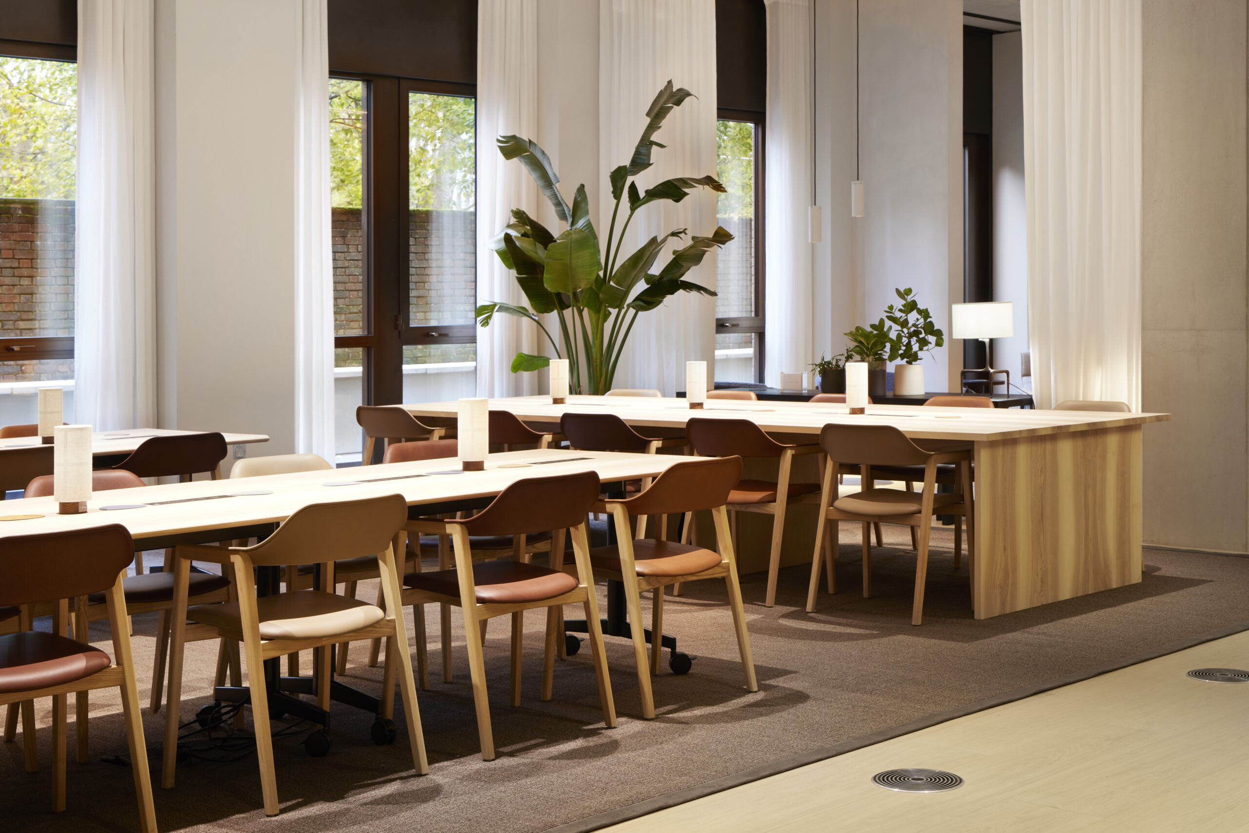 Across two levels, the lounge offers a calm, flexible environment for Derwent London’s community: from open coworking zones and private meeting rooms to quiet library spaces, a café, and an outdoor terrace.