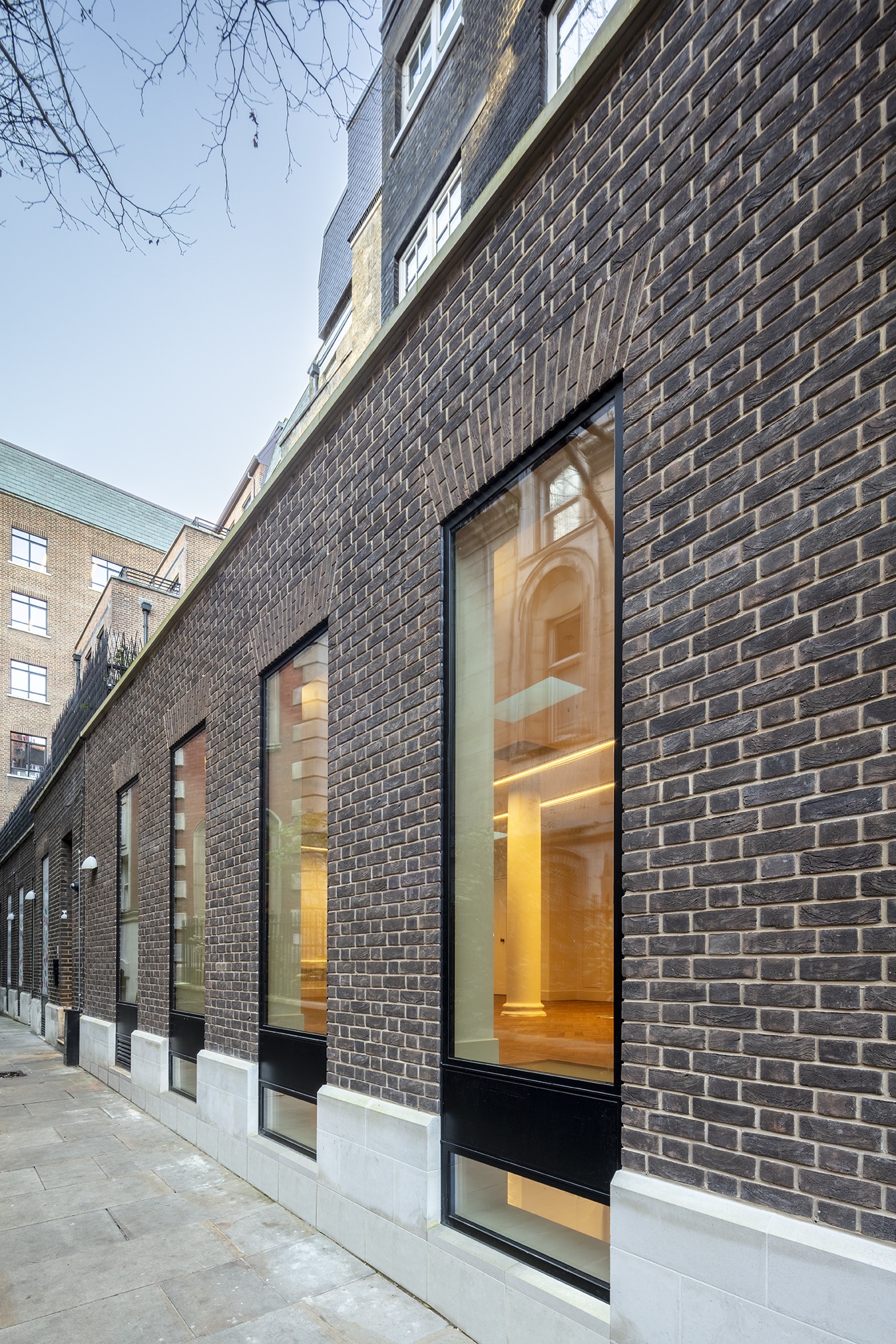 To protect the archival collections, a bespoke handset brickwork façade was carefully crafted to mimic the richness of a woven tapestry. The design delivers character while maintaining precise environmental control, balancing heritage expression with functionality. Framed by the intricate brickwork is the Mercers’ Maiden, representing the coat of arms for The Mercers’ Company, which has been used since at least the 15th century.